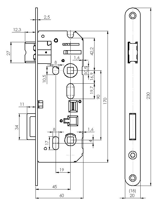 Zadlabávací zámok do dverí ČSN - 90/45/60